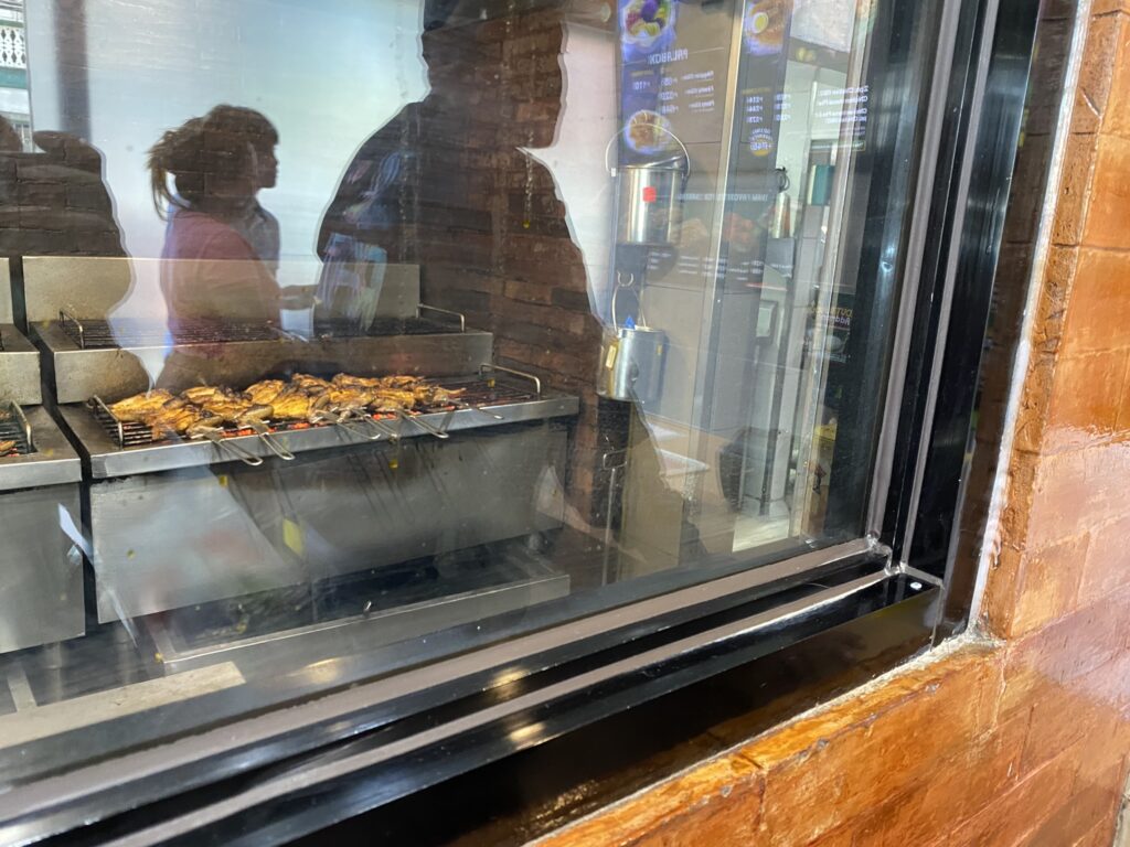お店でグリルしてくれるチキン。テーブルソースにカラマンシーを絞ってディップして食べます♪めちゃめちゃおいしい~♪