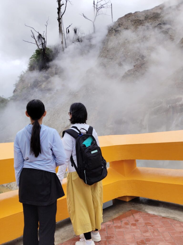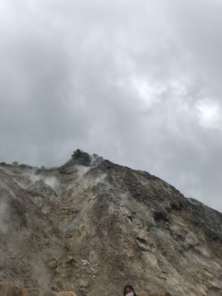 まず着いたのが、硫黄がまざった蒸気が噴出する岩壁。観光スポットのようです。道路や見学エリアが整備されていました。たまたま近くにいた観光客の方が、前は温泉卵を売ってたんだけど、見学エリアができて岩に近寄れなくなったからなくなったようだと話してました。温泉卵とは!日本と同じなんだなぁと思いました。(笑)