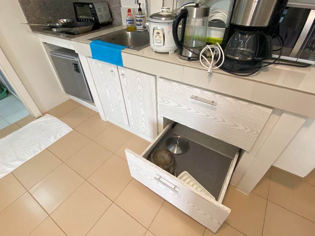 ↓キッチン家電をはじめ、食器や調理道具もとても充実していました。炊飯器もありました♪
