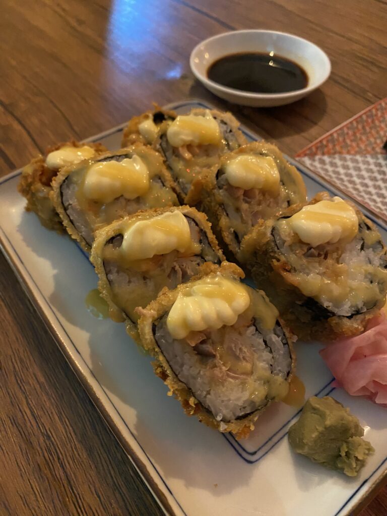 照り焼きチキン丼、カルフォルニアロール(子供が撮影したのでおもしろいアングルです。笑)