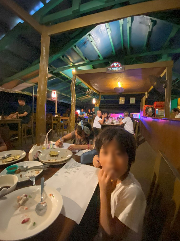 出発まで時間がたっぷりあったので、さっきもらったレチョンサンドを食べました。ボリュームすごくてびっくり!お値段以上な感じがしました。